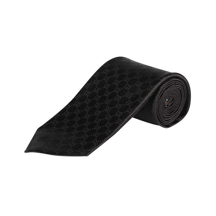 구찌 실크 넥타이 456520 4B002 1000 GG 패턴 블랙