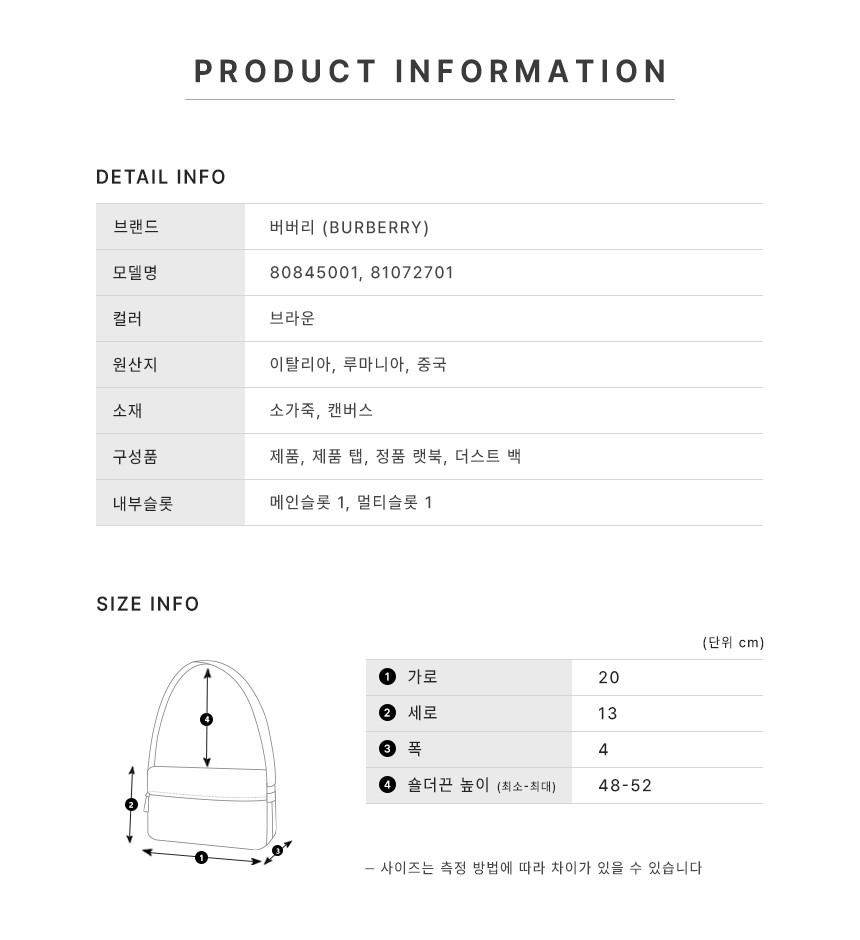 버버리 미니 크로스백 뉴 햄프셔 체크 80845001 81072701 브라운