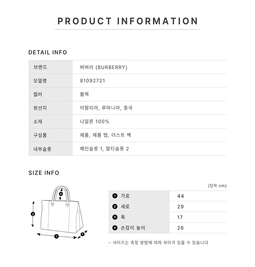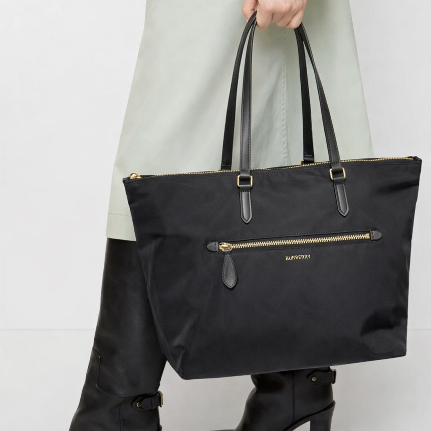 버버리 나일론 토트백 숄더백 81092721 레터링 로고 블랙